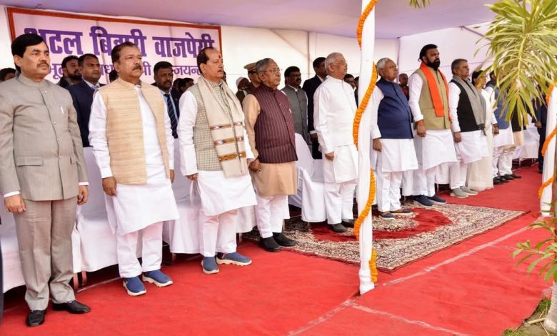 आज पटना में पूर्व प्रधानमंत्री, भारत रत्न, हमारे आदर्श, परम श्रद्धेय अटल बिहारी वाजपेयी जी की 100वीं जयंती के अवसर पर महामहिम राज्यपाल श्री राजेंद्र विश्वनाथ आर्लेंकर जी, माननीय मुख्यमंत्री श्री नीतीश कुमार जी एवं अन्य गणमान्य की मौजूदगी में आयोजित राजकीय समारोह में शामिल हुआ और श्रद्धेय अटलजी को याद किया।